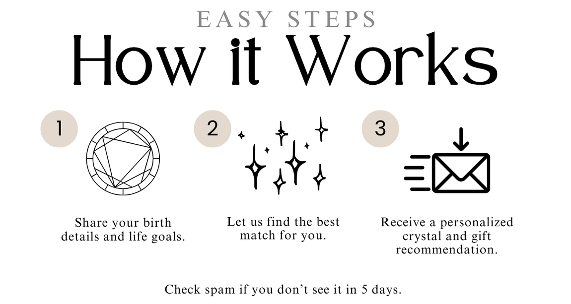 Fill out this form to receive your FREE PERSONALIZED CRYSTAL CONSULTATION ! Discover the crystals that align with your birth chart, current life path, and manifestations. Based on the information you provide, we’ll recommend the perfect crystals to help you attract balance, clarity, and abundance.